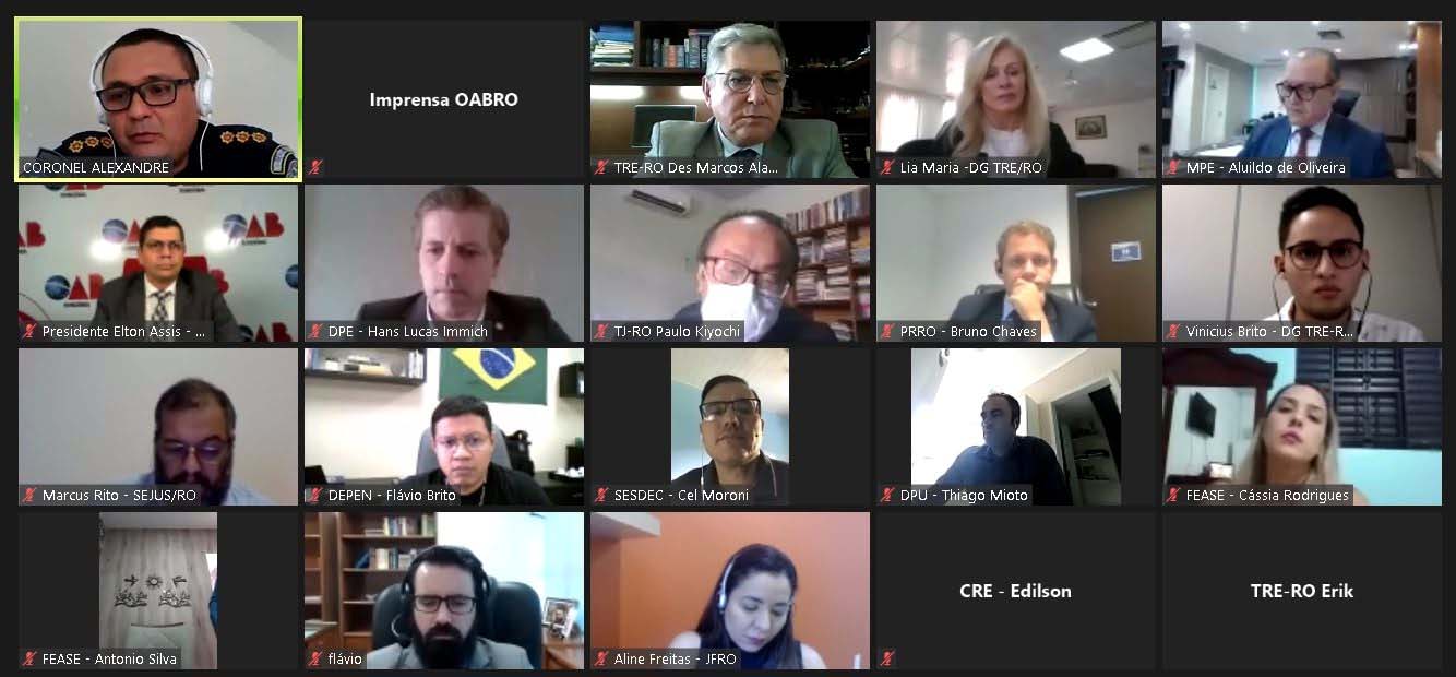 Em prol de viabilizar a participação de presos provisórios e adolescentes internados nas eleições 2020, o presidente do Tribunal Regional Eleitoral de Rondônia (TRE-RO), desembargador Marcos Alaor Diniz Grangeia, promoveu na tarde desta quarta-feira (23) uma reunião virtual com diversos órgãos para celebrar Termo de Cooperação Técnica e ouvir a concordância das instituições envolvidas na ação.