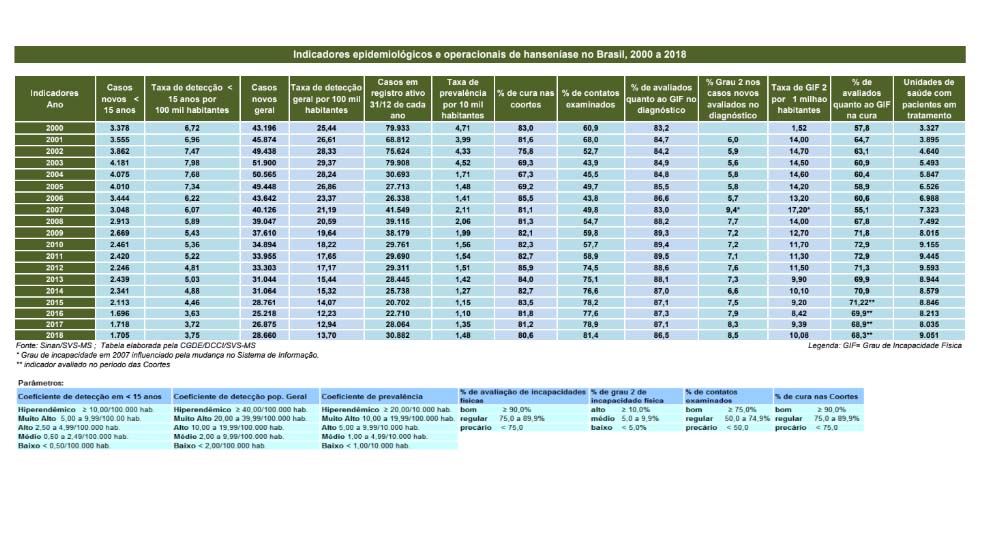 Silenciosa e negligenciada pelas autoridades sanitárias em anos anteriores, a hanseníase acumula milhares de vítimas ano após ano no Brasil. Entre 1999 e 2018, foram diagnosticados 768.215 casos desta doença, que pode ser detectada com facilidade. Mesmo com as constantes campanhas educativas, com foco no diagnóstico precoce, a detecção de novos casos tem indicado uma média de 38 mil registros por ano, no período. Atualmente, a Organização Mundial da Saúde (OMS) coloca o Brasil no segundo lugar no mundo em casos de hanseníase. Perde apenas para a Índia, que em 2017 apresentou 126.164 registros.