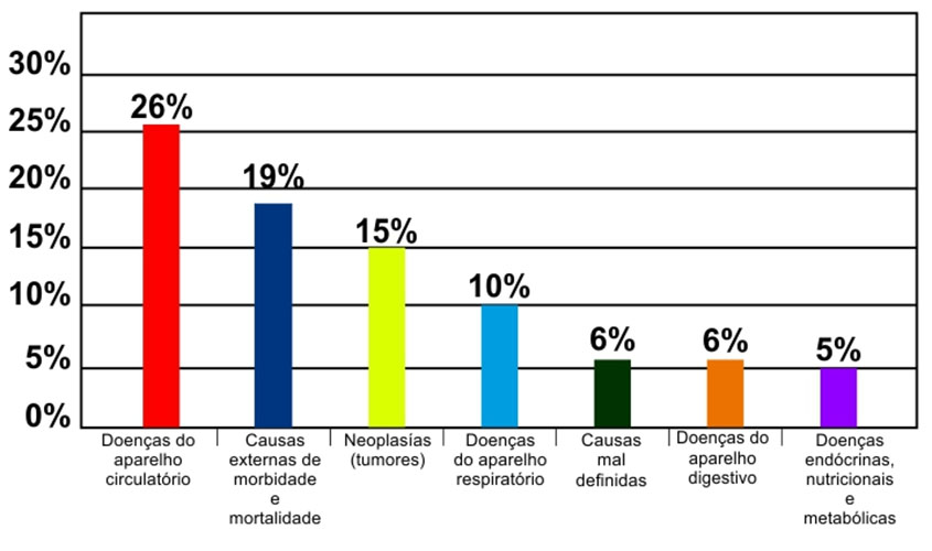 Em Rondônia, há três anos que o infarto agudo do miocárdio e a hemorragia intracerebral são as principais causas de morte na população masculina de 50 a 59 anos. Em segundo lugar aparecem as neoplasias (tumores) sendo a principal delas o câncer de estômago seguido do câncer de fígado