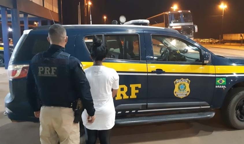 Enquanto realizavam consultas aos documentos dos ocupantes do veículo, os policiais notaram que uma das passageiras, que viajava com sua filha de 8 meses, era foragida da Justiça. O mandado, expedido pelo Poder Judiciário do Acre, decorre de condenação a 10 anos em regime fechado pela prática de vários crimes, dentre eles o de organização criminosa.