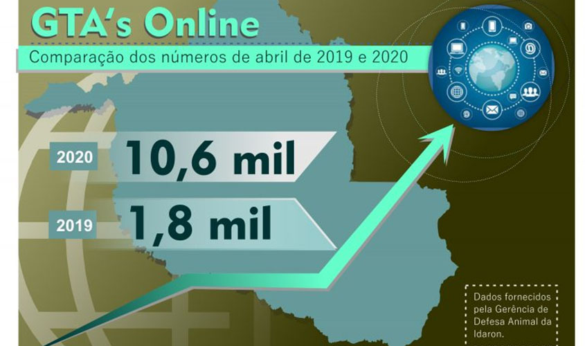 Uma das ferramentas voltadas ao atendimento, a GTA Online (emissão pela internet de Guia de Transporte de Animais), feita através do site da Idaron, registrou uma demanda crescente e fechou abril com 10,6 mil guias emitidas, número bem superior ao registrado no mesmo período do ano passado, quando se registrou 1,8 mil GTA’s Online.