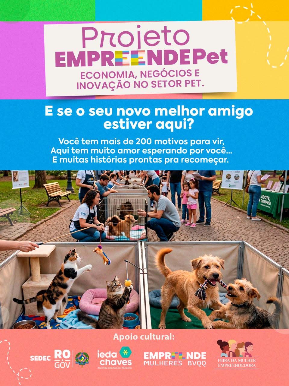 Começa hoje, sexta-feira (17/04), o EmpreendePet – um evento inédito que une geração de renda, bem-estar animal e valorização da cultura rondoniense. Realizado no Espaço Alternativo, a partir das 17h, com entrada gratuita, a programação segue até domingo (19/04) e promete movimentar a capital com três eixos centrais: o empreendedorismo feminino, a adoção responsável de cães e gatos, e a gastronomia regional.