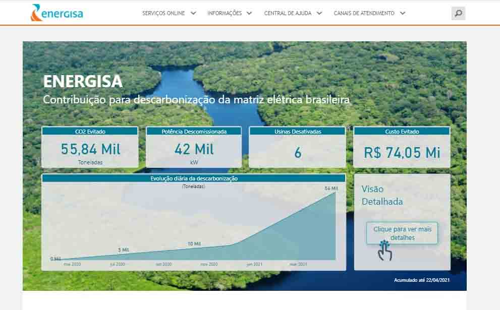 O Grupo Energisa, maior empresa privada de capital nacional do setor elétrico brasileiro, lança o Descarbonômetro, um monitor online que permite acompanhar hora a hora a redução da emissão de gases de efeito estufa decorrente do maior programa de desligamento de usinas termelétricas do país. No Descarbonômetro (disponível aqui), é possível acompanhar a quantidade de CO2 evitado, as plantas desativadas, a potência descomissionada e o custo evitado, entre outras informações, detalhadas por localidade atendida na Amazônia.