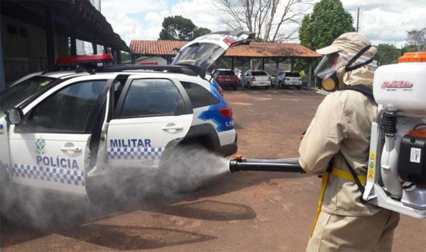 Polícia Militar inicia a desinfecção de viaturas e do prédio do batalhão