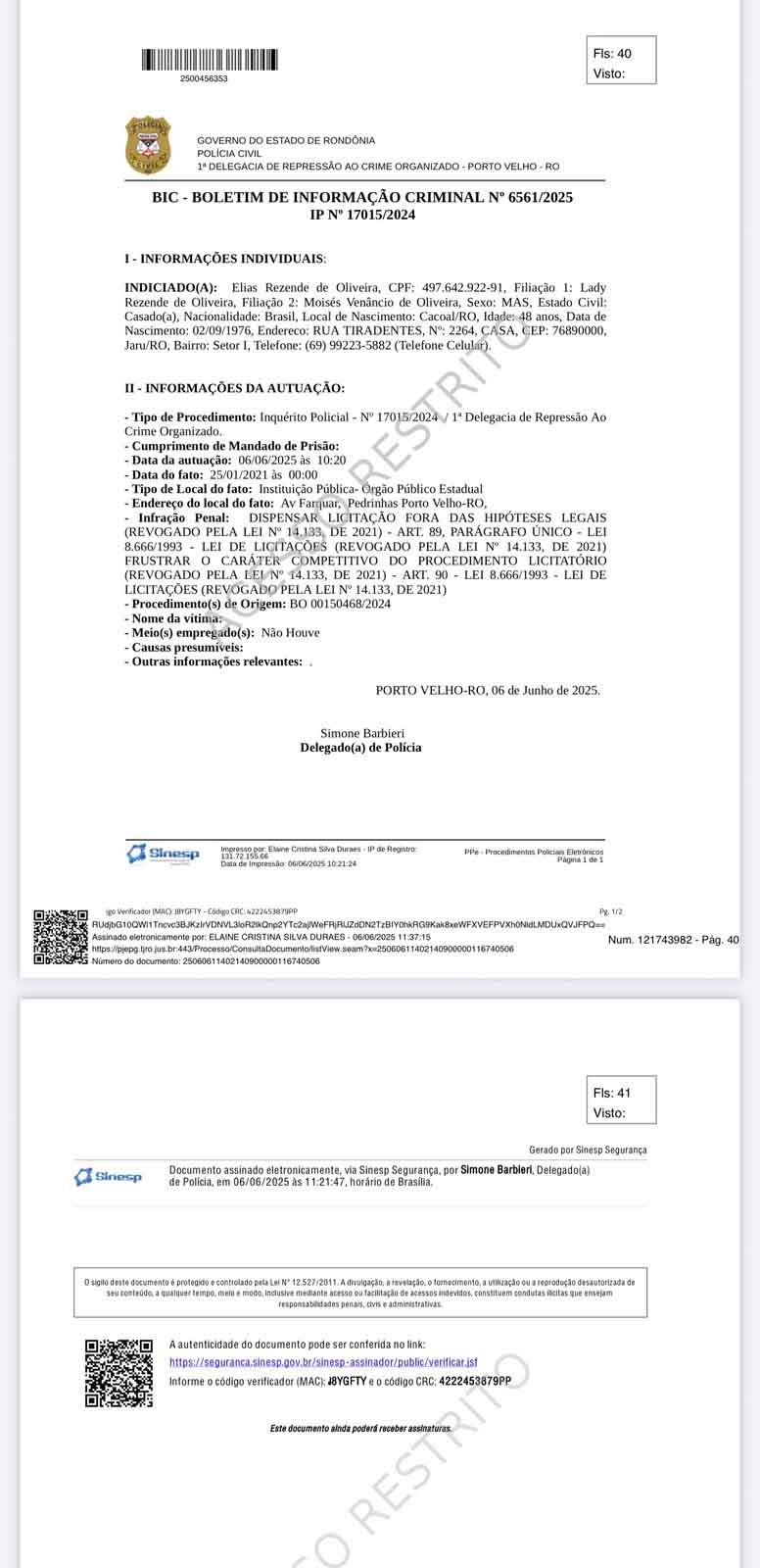 A investigação que acusa Elias Rezende, Chefe da Casa Civil e homem de confiança do Governador Marcos Rocha, de envolvimento direto num esquema milionário de associação criminosa, fraude à licitação e direcionamento contratual no Governo do Estado de Rondônia acaba de ganhar novos contornos explosivos.