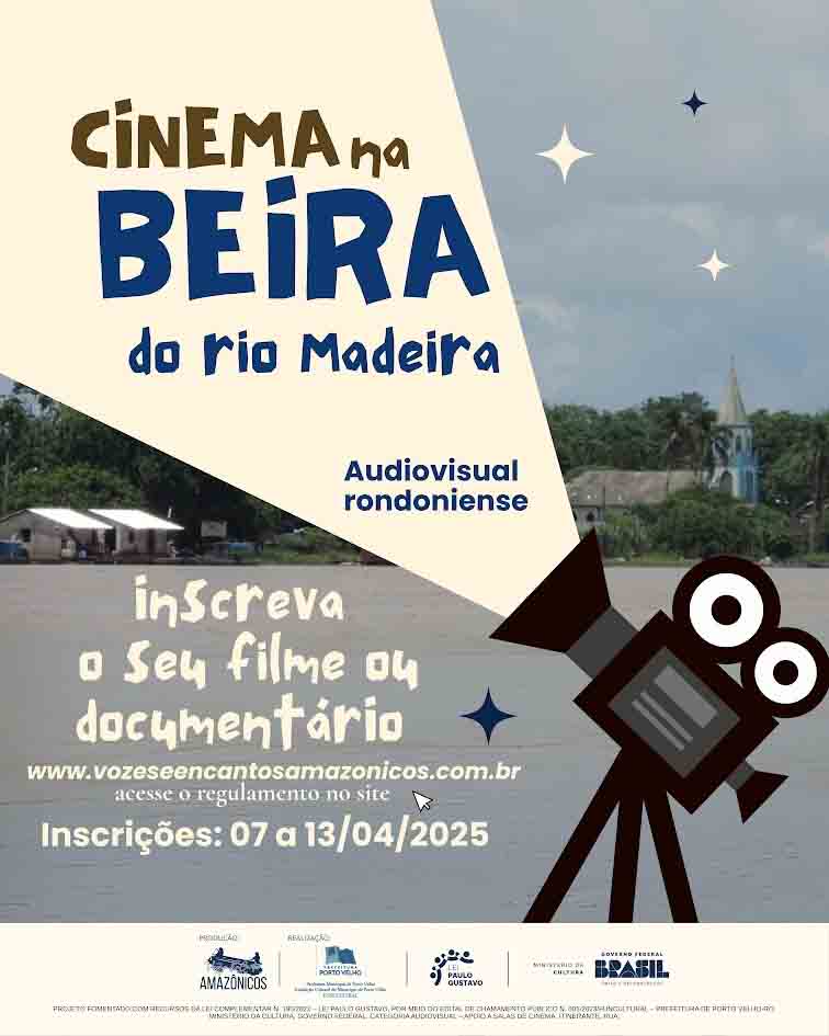 Estão abertas as inscrições para o Cinema na Beira do Madeira, uma iniciativa de cinema itinerante que será realizada em quatro (4) comunidades ribeirinhas de Porto Velho: Cavalcante, São Carlos, Demarcação e Calama. Capitaneado pelo Coletivo Vozes e EnCantos Amazônicos, sob direção executiva da produtora cultural Eva da Silva Alves, o processo de submissão das obras audiovisuais está prescrito e formalizado no Regulamento, disponível no site do Coletivo Vozes e EnCantos Amazônicos (https://www.vozeseencantosamazonicos.com.br/about-2). As inscrições devem ser realizadas, exclusivamente, por meio do Formulário de Inscrição.