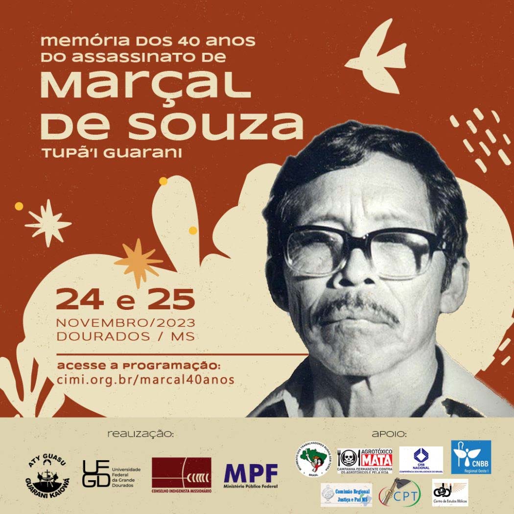 Para celebrar sua luta e sua memória, o evento “Marçal, presente: memória dos 40 anos do assassinato de Marçal de Souza Tupã’i” será realizado entre os dias 22 e 25 de novembro, com diversas atividades distribuídas entre os municípios de Caarapó e Dourados (MS).