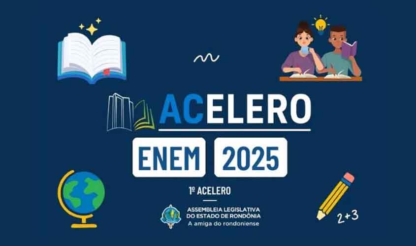 A Escola do Legislativo de Rondônia (Elero) dá início ao projeto Acelero Enem 2025 com o primeiro grande evento no próximo 13 de agosto, das 19h às 22h, no auditório da Assembleia Legislativa do Estado de Rondônia (Alero), em Porto Velho. O lançamento será marcado por um aulão gratuito voltado à preparação para o Exame Nacional do Ensino Médio (Enem), com transmissão ao vivo para todo o estado por meio da TV Alero, site oficial, canal no YouTube e canal aberto 7.2 de televisão.