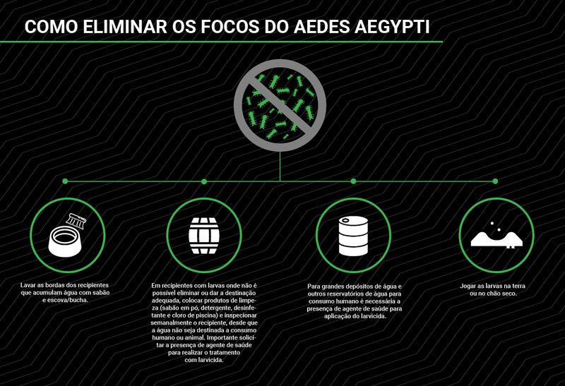 As autoridades de saúde reforçam o papel dos moradores no combate a focos do mosquito transmissor da dengue, Zika e chikungunya. A recomendação do Ministério da Saúde é de que limpeza de possíveis focos do Aedes, dentro de casa, seja semanal.