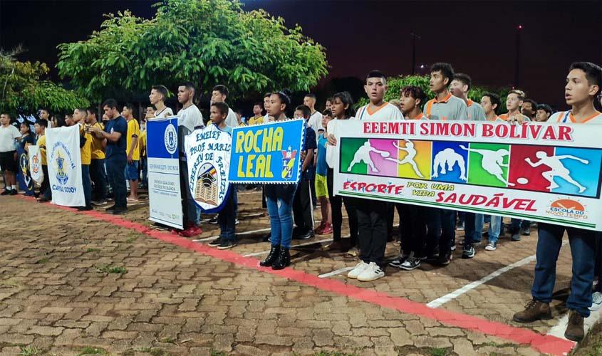 Emoção e a expectativa dos alunos e professores marcaram a abertura da fase municipal dos Jogos Escolares de Rondônia (Joer), em Guajará-Mirim, na noite de quinta-feira (12) no pátio do Palácio Pérola do Mamoré. Cerca de 700 atletas de 14 escolas guajaramirenses, das Redes Estadual, Municipal e particular de Ensino participam da competição. Este ano marca o retorno dos jogos, após dois anos suspensos por conta da pandemia da covid-19.