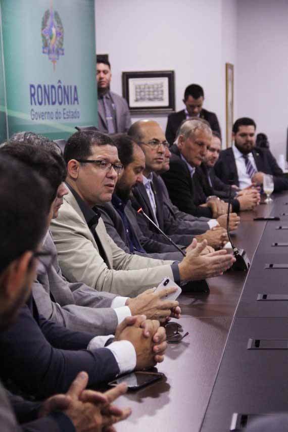 ‘‘Quando um deputado, prefeito ou vereador chegar aqui procurem atender eles’’, disse o governador aos secretários, superintendentes e presidentes de autarquias estaduais. A reunião convocada pelo governador também foi uma oportunidade de apresentar a equipe de governo aos deputados estaduais, destacar a importância de um trabalho conjunto para o desenvolvimento de Rondônia, assim também como um trabalho alinhado para superar os grandes entraves para a economia rondoniense.