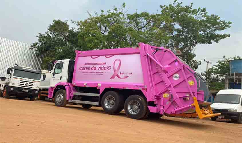 Caminhões da EcoRondônia usam as cores das campanhas para promover a sensibilização e conscientização de colaboradores e da população sobre saúde e bem-estar
