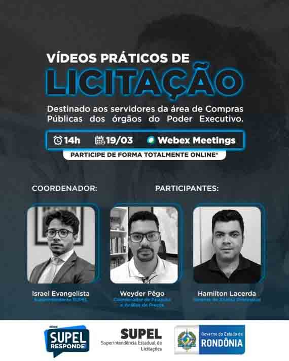 Supel responde, a série de vídeos práticos de licitação da Superintendência Estadual de Licitação (Supel) do Governo de Rondônia volta ao ar nesta sexta-feira (19), dando continuidade a temas correlatos.