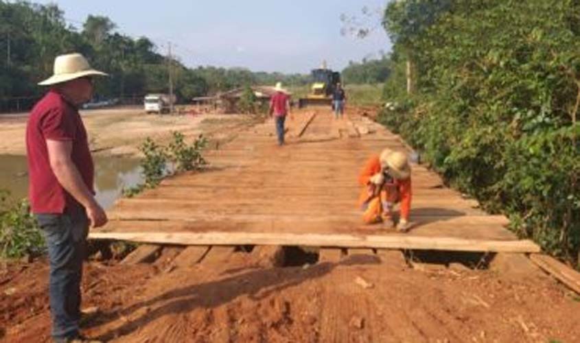 Governo de Rondônia recupera ponte de madeira sobre o rio Branco na RO-370