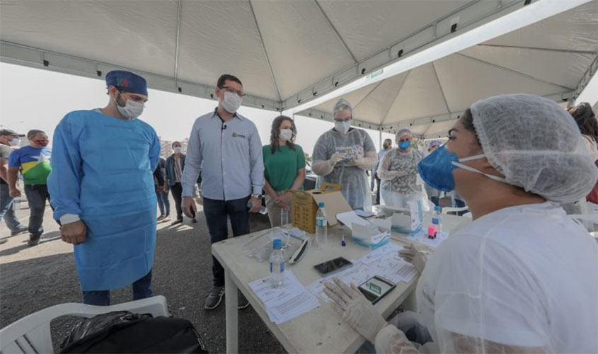A testagem aconteceu no estacionamento do Palácio Rio Madeira, quando foram realizados 1.543 testes, dos quais 261 foram positivados