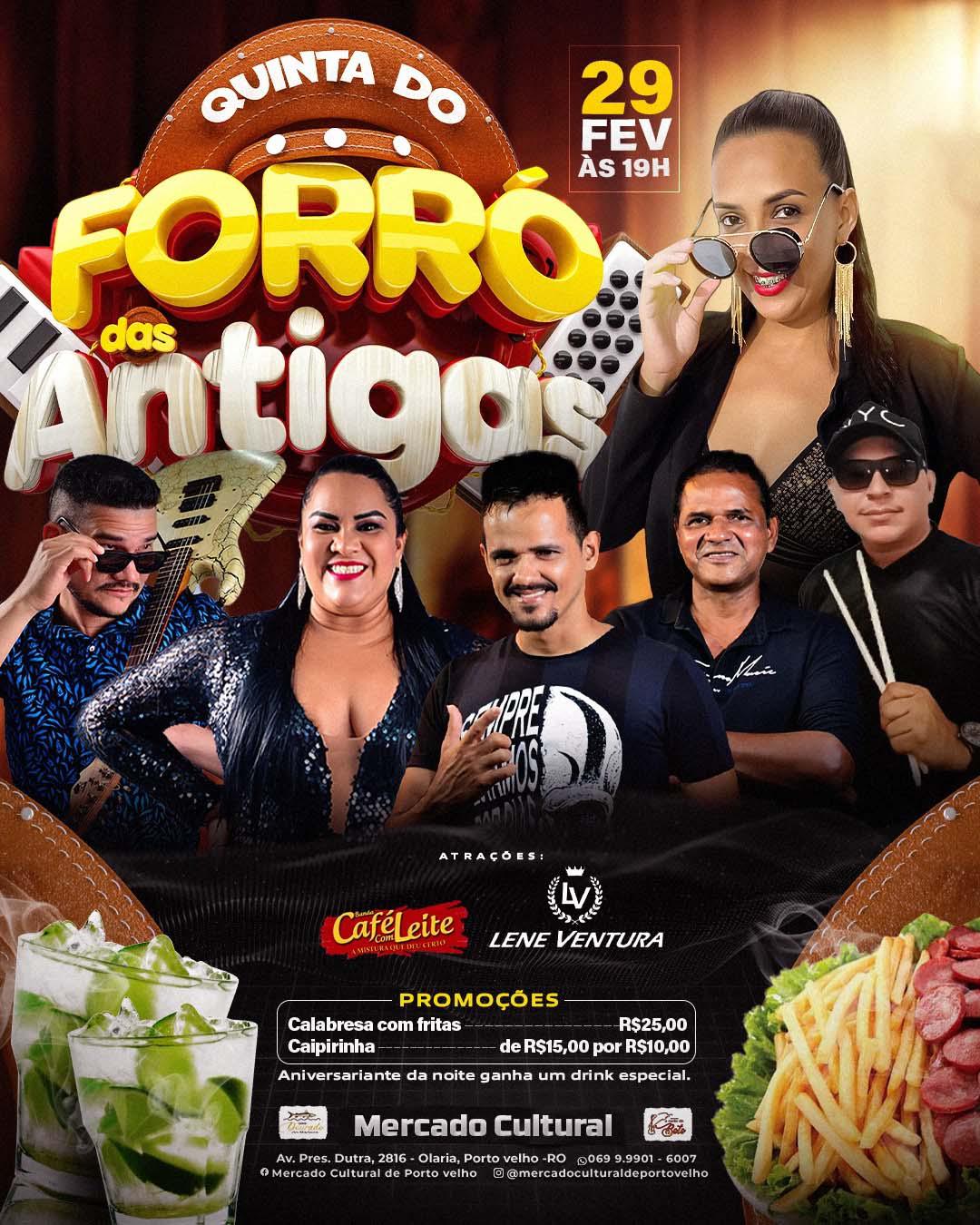 QUINTA - Na tradicional 'Quinta do Forró das Antigas', terá duas atrações, o primeiro show é às 19h, com Lene Ventura, na sequência, show da banda Café Com Leite.