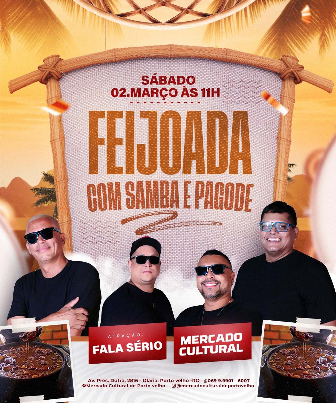 Com 12h de shows, a primeira atração começa ao meio dia, com apresentação do grupo Fala Sério na tradicional 'Feijoada Com Samba e Pagode'.
