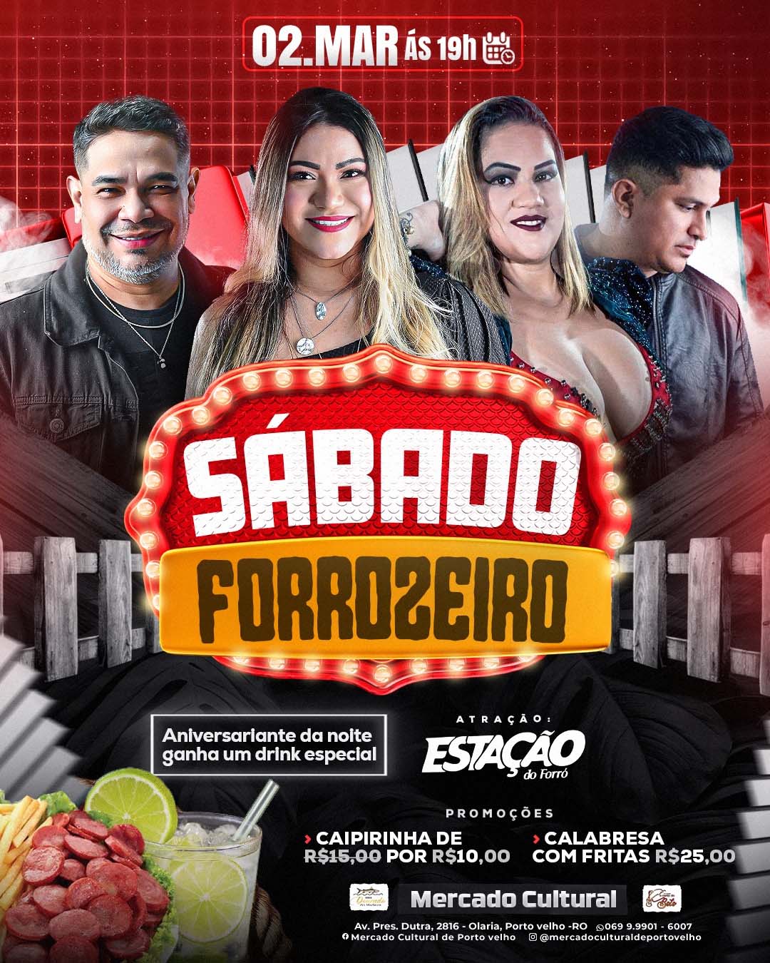 "Hoje, dia 28, às 20h, tem a nossa'Quarta N°1' com showzaço do grupo de Pagode Me Pega", enfatizou o empresário Sinezio Tapajós, permissionário do box Dourado do Madeira, acrescentando que os shows que acontecem no palco do Mercado Cultural de Pvh, são gratuitos!