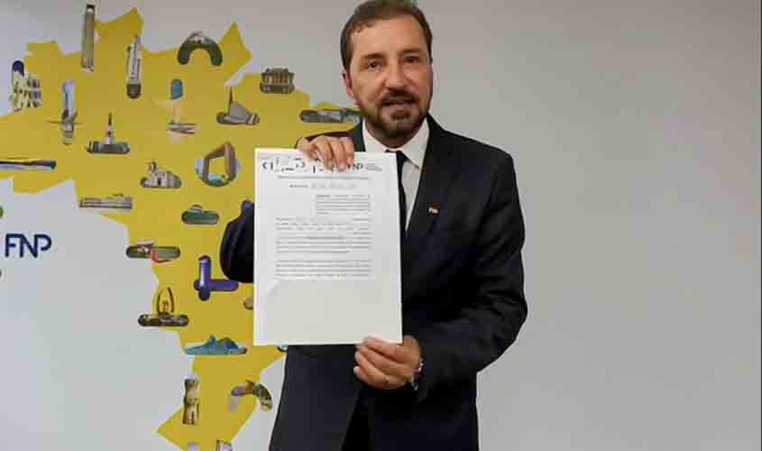 Prefeito exibe o documento assinado em Brasília nesta terça-feira (02)