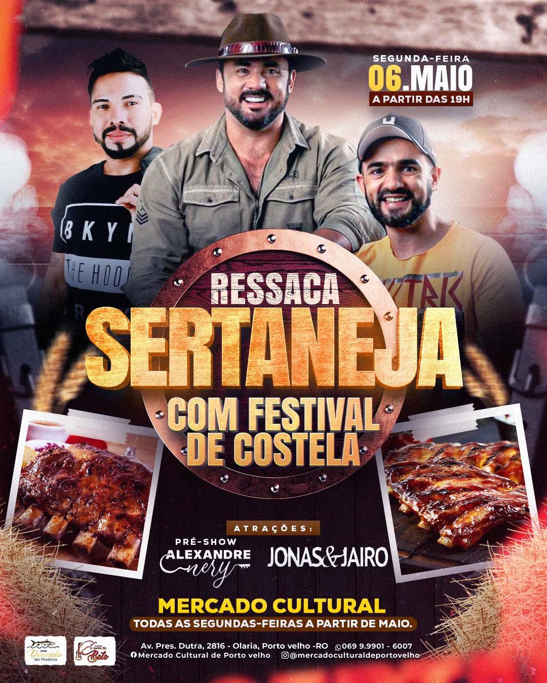 A melhor noite de segunda da capital rondoniense, passará a chamar agora de 'Ressaca Sertaneja', com festival de costela, show de Alexandre Nery, a partir das 19h, na sequência, show da dupla Jonas & Jaíro.
