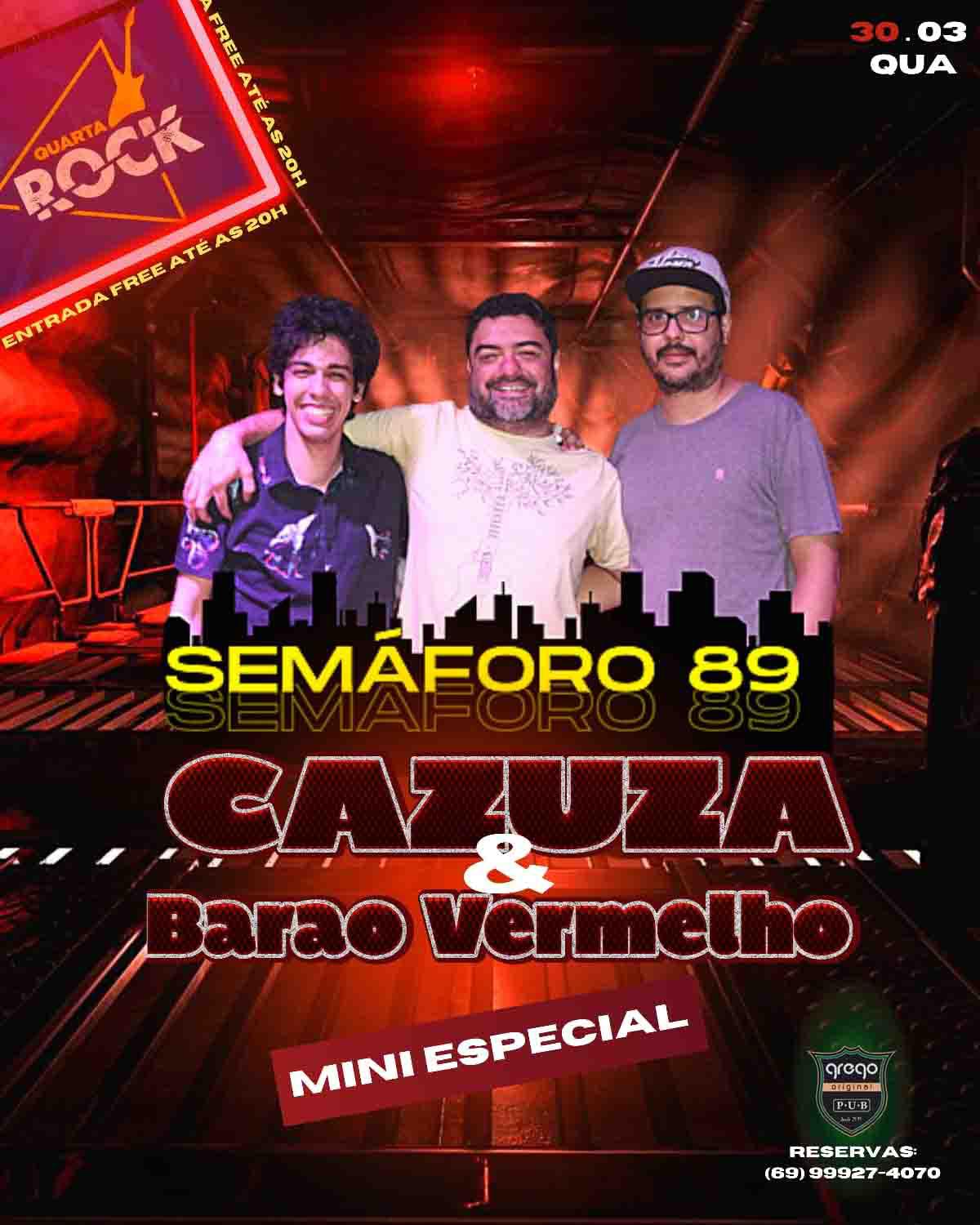 A banda Semáforo 89, além dos clássicos do rock nacional e internacional, vai mandar as melhores do Cazuza e Barão Vermelho no evento musical "Quarta Rock", no tradicional Pub porto-velhense Grego Original. A casa abre a partir das 17, e o espetáculo musical começa a partir das 19h.