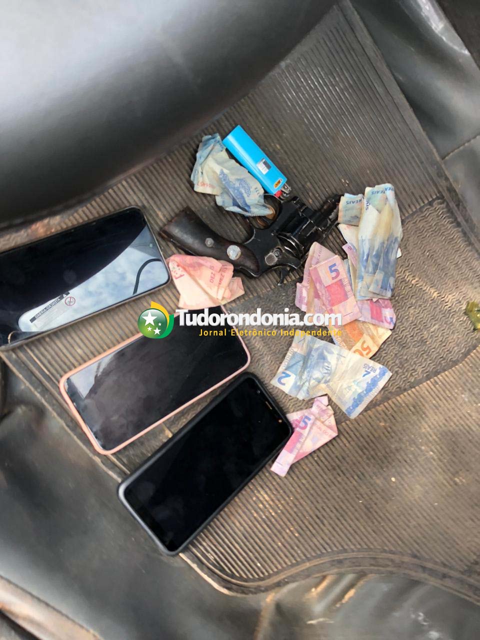 Com o suspeito foram encontrados um revólver calibre 32, aparelhos celulares e dinheiro das vítimas.