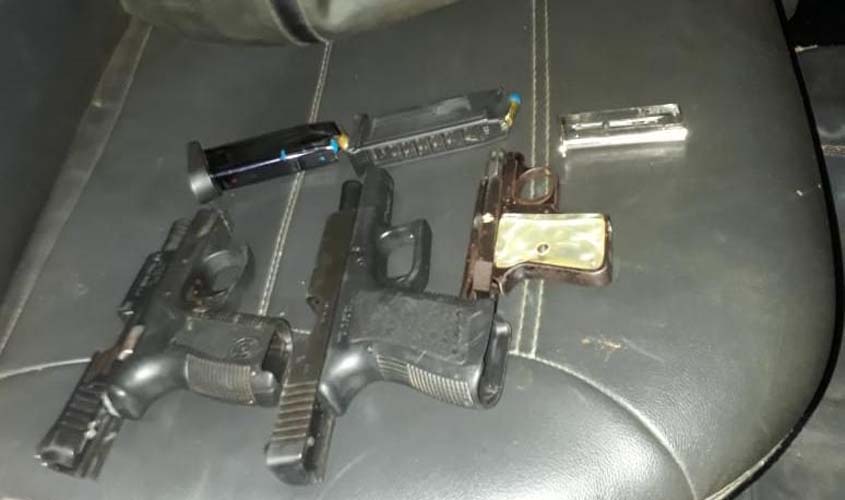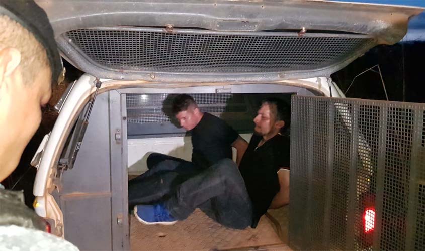 Os policiais pediram apoio de outras guarnições para fazer o cerco, pois os demais suspeitos haviam se embrenhado no matagal. Depois de intensas buscas os policiais prenderam Fábio Ribeiro Freitas, 34 anos, e Felipe Alves Miranda, 28 anos, que estavam de posse de duas armas de fogo, uma Glock e um pistola bereta 22.