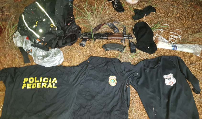 Durante os trabalhos da perícia, dentro da bolsa do suspeito morto foi encontradas três camisas (duas da Polícia Federal e outra da Polícia Civil), bem como balaclavas, amarradeiras de plástico e luvas. A arma AK 47, de calibre 762, é de procedência norte-americana.