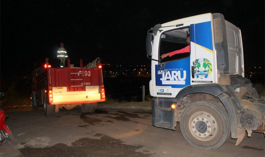 Duas viaturas ABTS do Corpo de Bombeiros de Jaru e mais dois caminhões pipas da prefeitura foram mobilizados.