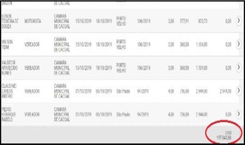 Portal da Transparência revela que o gasto total em 2019 com diárias quase chega aos r$ 200 mil / Foto: Extra de Rondônia