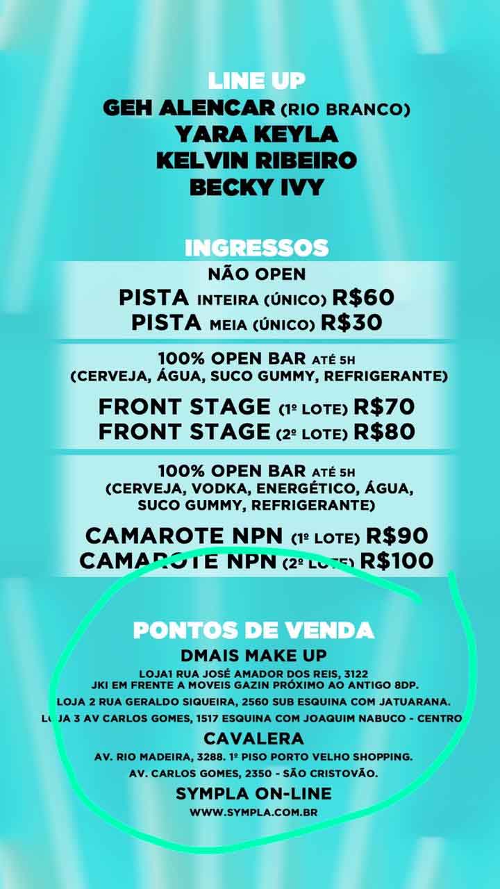 Já estão à venda os ingressos para o show da cantora drag Pablo Vitar, que se apresenta em Porto Velho no dia 15 de fevereiro, na Talismã 2. Ver abaixo os pontos de venda. São três pontos de venda:Dmais Make UP, Cavalera (Shopping) e Sympla on line.