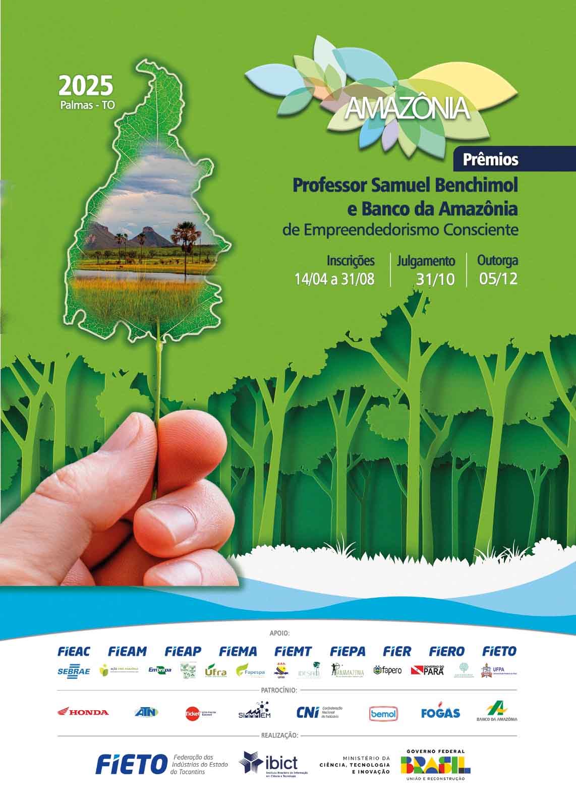 As inscrições e demais informações sobre o regulamento, categorias, critérios de avaliação e edições anteriores estão disponíveis no Portal dos Prêmios. (https://amazonia.ibict.br/). Neste ano, a cerimônia de premiação ocorrerá na sede da Federação das Indústrias do Estado de Tocantins. As premiações são realizadas anualmente e de forma itinerante, nos estados que compõem a Amazônia Legal, contando com o apoio institucional da Confederação Nacional da Indústria (CNI), das Federações de Indústrias da Amazônia Legal, do Banco da Amazônia e do Ministério da Ciência, Tecnologia e Inovação (MCTI), por meio do Instituto Brasileiro de Informação em Ciência e Tecnologia (IBICT).