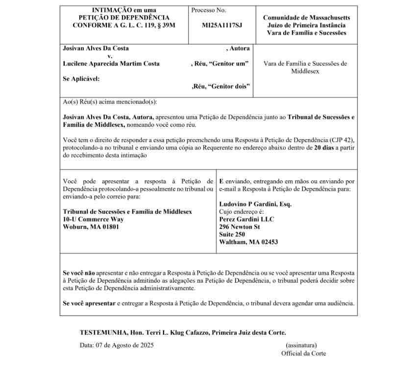 Intimação em uma petição de dependência - Lucilene Aparecida Martim Costa