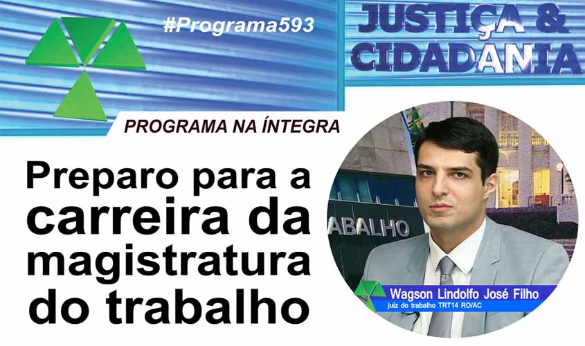 Em entrevista ao programa Justiça & Cidadania, o juiz do trabalho substituto do Tribunal Regional do Trabalho da 14ª Região RO/AC (TRT-RO/AC), Wagson Lindolfo José Filho, apresentou o livro de sua autoria: "Magistratura Trabalhista - Guia completo sobre como se preparar para a carreira".