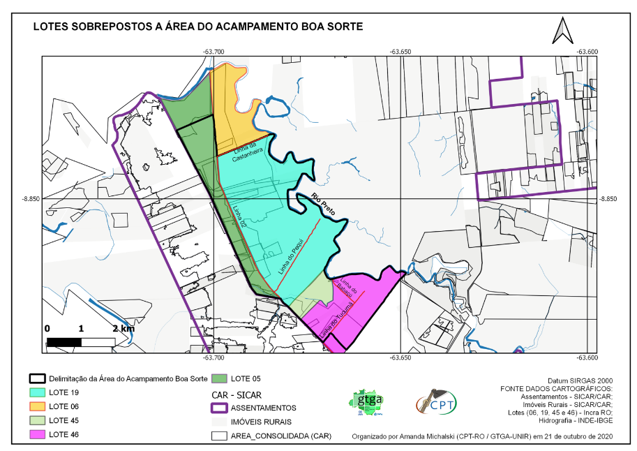 | Localização do Acampamento Boa Sorte /Fonte: acervo fundiário Incra / atividade de campo em 2020 (GTGA e CPT-RO) |