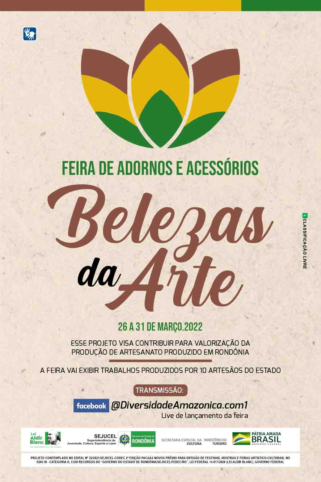 A feira conta com a exposição de produtos de 10 artesãos de Rondônia e será realizada de forma virtual nos dias 26 e 31 de março.