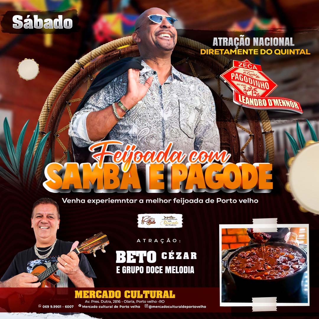 Neste sábado, dia 03, às 12h, o cantor e compositor Leandro D’Mennor, afilhado do cantor e compositor Zeca Pagodinho, será a grande atração da tradicional "Feijoada com Samba e Pagode", que acontece todos os sábados, no espaço público, histórico, cultural e turístico da capital rondoniense, o Mercado Cultural.