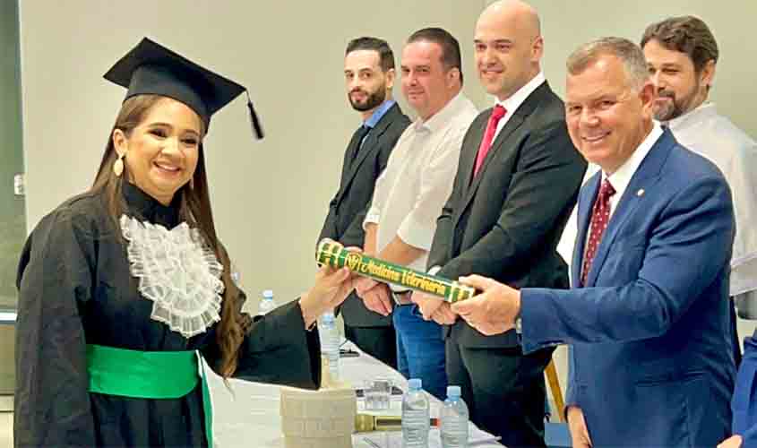 Mosquini trabalhou para trazer o curso a Jaru, e agora celebra junto aos novos médicos veterinários a realização de um sonho que transforma a história da cidade