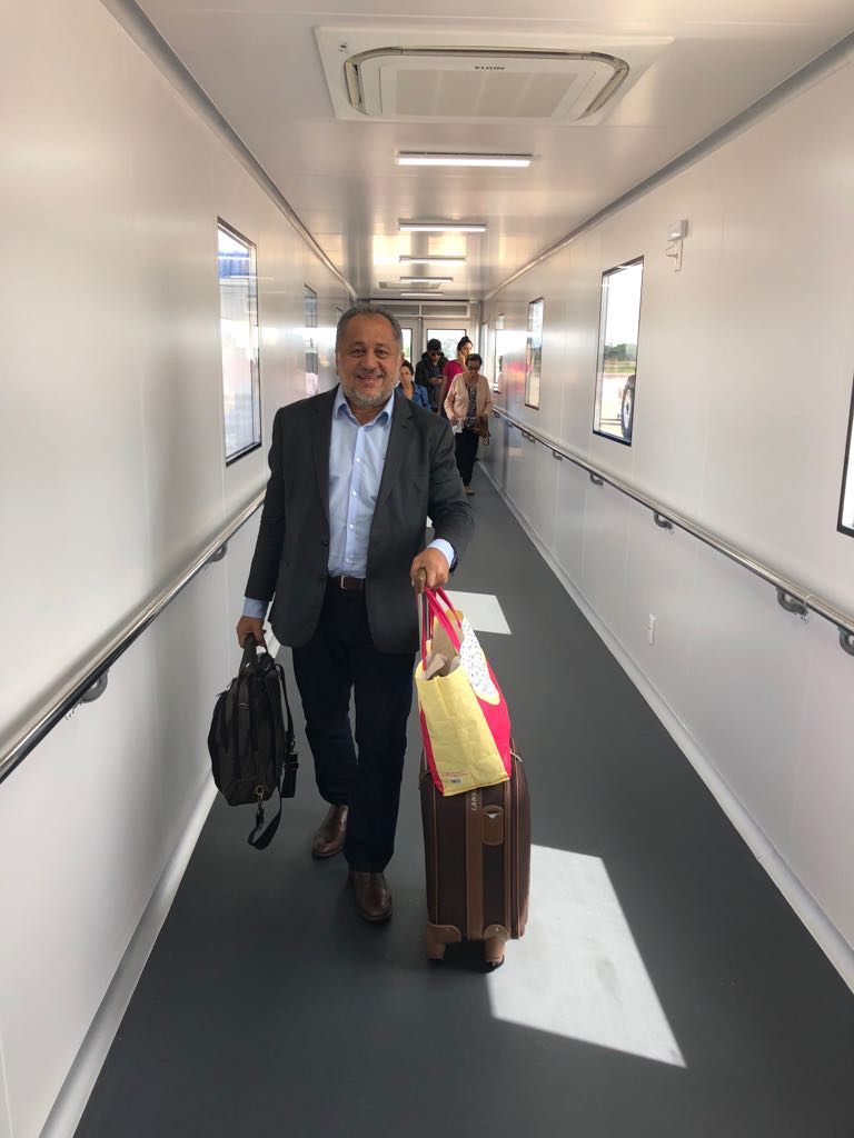 O deputado Federal Luiz Cláudio (PR-RO), chegou a Porto Velho hoje depois de muito trabalho e audiências em Brasília, em busca de recursos federais para o Estado e aproveitou para utilizar pela primeira vez e inaugurar o Elo de condução entre os passageiros e as aeronaves no aeroporto Jorge Teixeira.