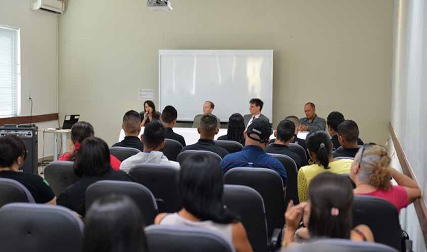 Na Tiradentes, o diretor da Emeron, desembargador Marcos Alaor Diniz Grangeia, falou sobre o sistema de justiça e também sobre cidadania. Ele apresentou alguns entes do sistema, como a Polícia Civil, o Ministério Público e o Judiciário, explicando a atuação de cada um e também quem os compõem. O magistrado ressaltou que conhecer o funcionamento de cada instituição é uma das formas de cidadania, pois permite que o cidadão saiba a quem recorrer para a garantia de seus direitos.