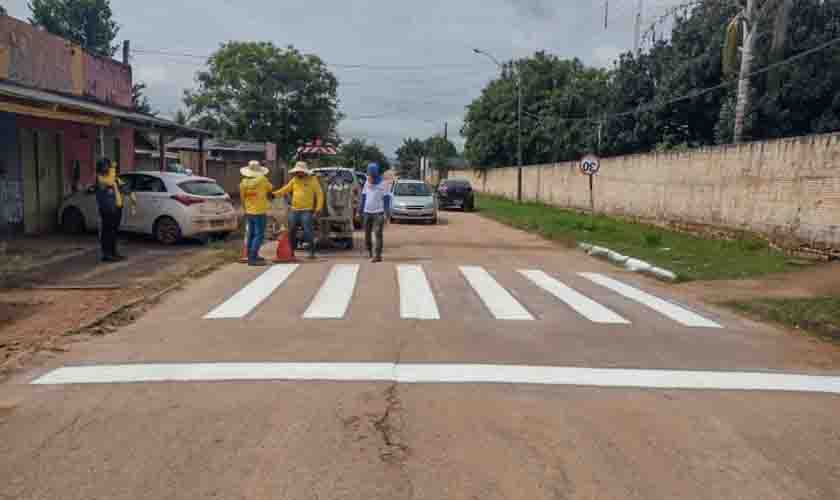 Ruas do distrito de Jaci-Paraná recebem sinalização horizontal e vertical