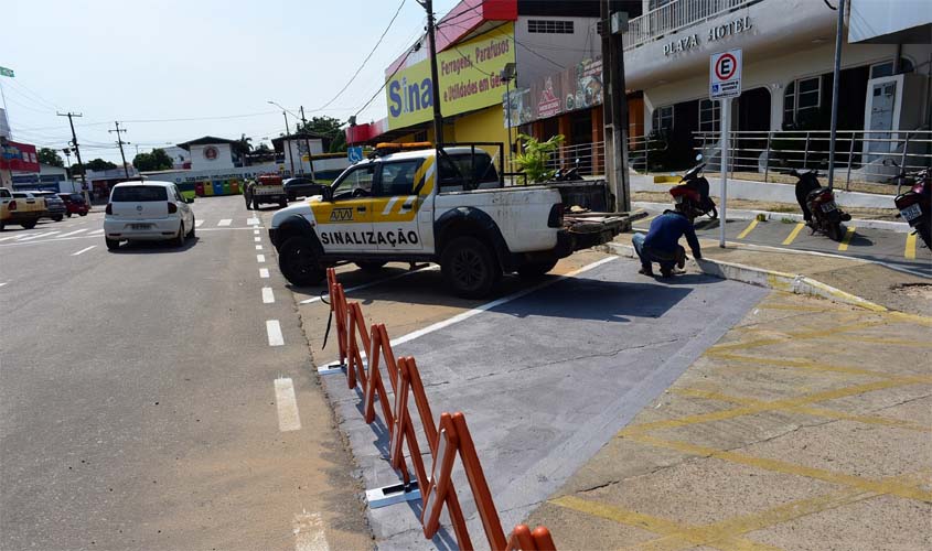 Estão sendo pintadas as vagas de estacionamento prioritário