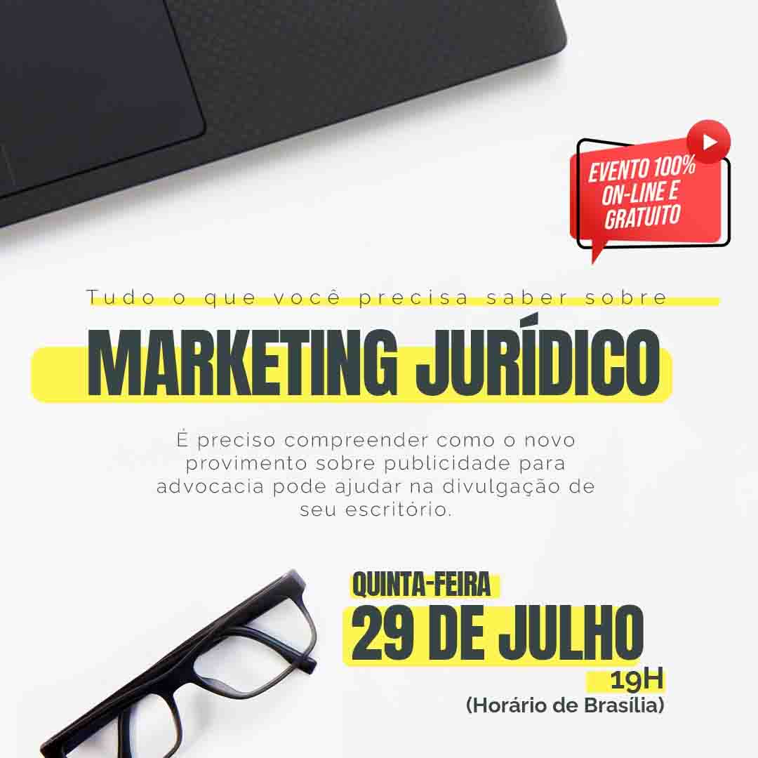 No dia 29 de julho às 19h, a live trará, de forma objetiva, as possíveis utilizações do marketing jurídico e, principalmente, em como fazer isso sem ferir o código de ética estabelecido pela OAB.