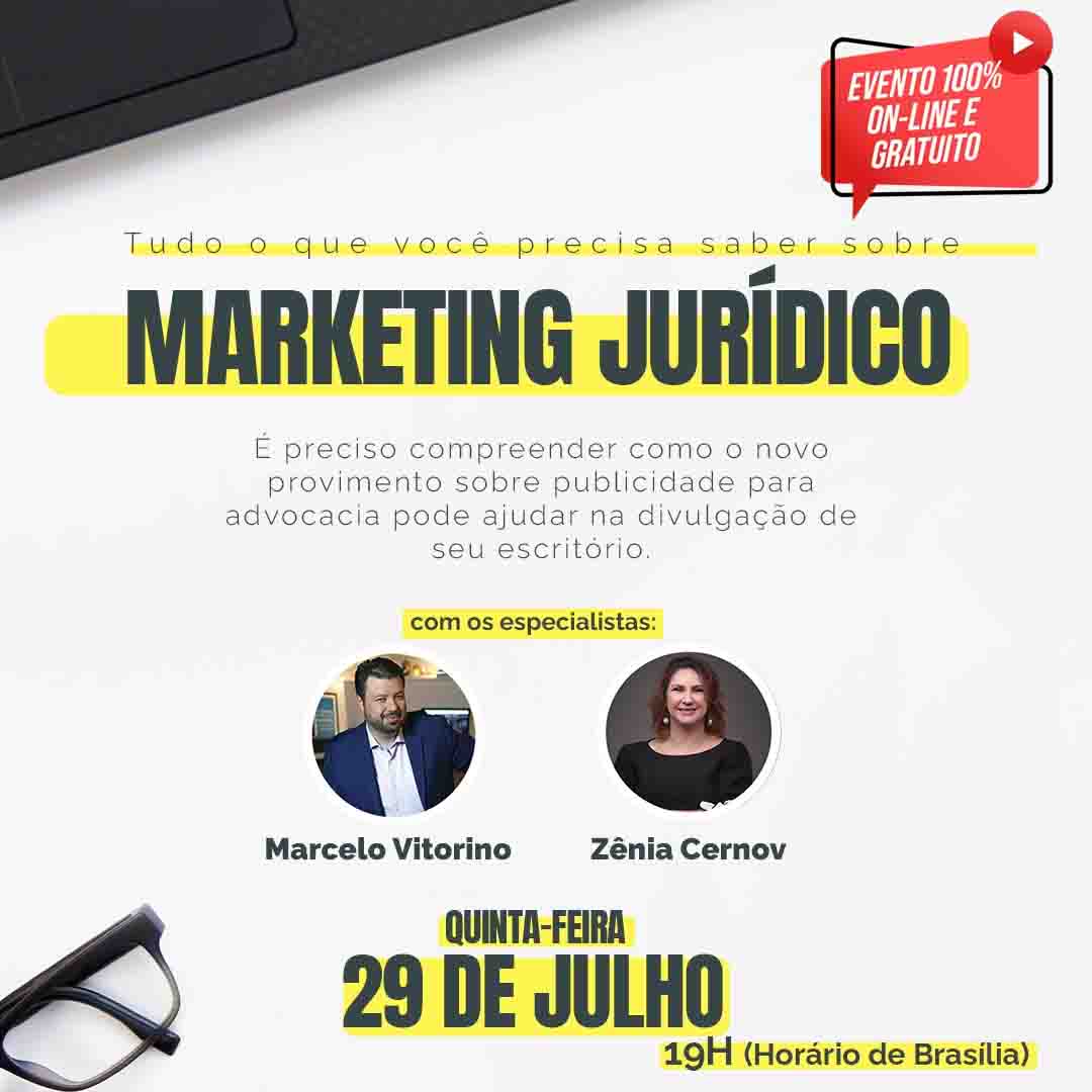 No dia 29 de julho às 19H (Horário de Brasília), o especialista em marketing e comunicação política Marcelo Vitorino debaterá, juntamente com a advogada Zênia Cernov, as novas regras do marketing jurídico e como a ferramenta poderá auxiliar na comunicação de escritórios de advocacia e ampliar a área de atuação de profissionais das mais diversas áreas do direito