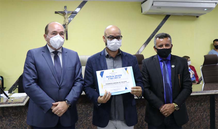 O presidente do Cremero recebeu a moção com entusiasmo, e em nome de todos os profissionais médicos agradeceu a homenagem. “Como Presidente do Conselho Regional de Medicina do Estado de Rondônia, busco ajudar a melhorar a saúde do rondoniense e entendo que uma das formas de fazer isso é auxiliar e valorizar o profissional médico e a medicina. Recordo neste momento de todos os profissionais que se acometeram da doença e já se curaram, aos que estão enfrentando o processo de cura, aos que estão bravamente na linha de frente atendendo a população, e aos verdadeiros heróis da pandemia, os médicos que faleceram pelo Covid-19. Estes profissionais merecem aplausos por esta grande missão”, reforçou Dr. Robinson Machado.