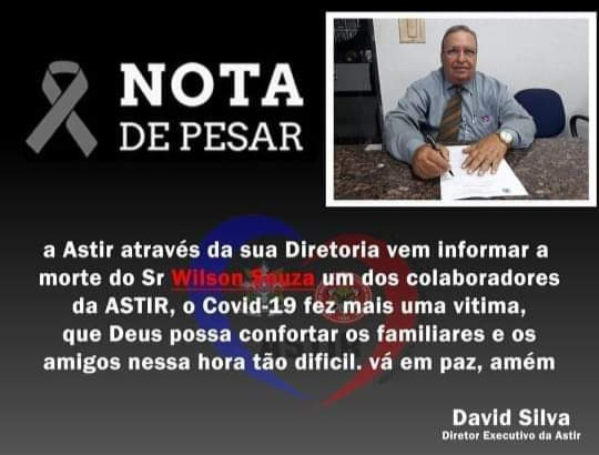 Faleceu no final da noite de sábado (20) aos 64 anos, em Porto Velho, o jornalista Wilson Souza, assessor de Imprensa da Câmara de Vereadores, por complicações decorrentes do novo Coronavírus (COVID-19/SARS-CoV-2).