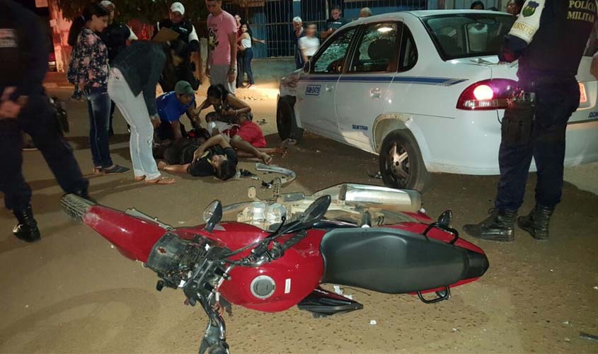 Porto Velho, Rondônia - No final da noite desse domingo (28), um jovem motoqueiro ficou em estado grave e a passageira sofreu pequenas escoriações após sofreram um acidente de trânsito. O casal estava muma moto Honda Titan e seguia na Avenida Geraldo Siqueira . Ao tentar fazer a conversão na Rua Tomás Édson, no bairro Cidade Nova, a moto bateu de frente com um táxi.