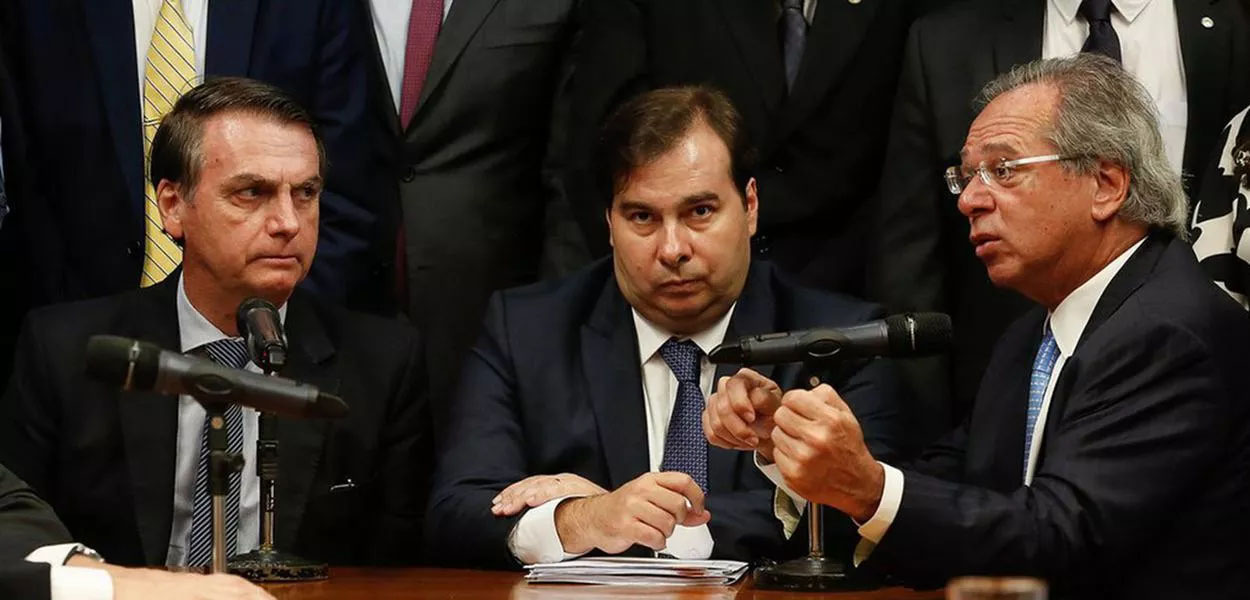 Jair Bolsonaro, Rodrigo Maia e Paulo Guedes (Foto: Carolina Antunes - PR)