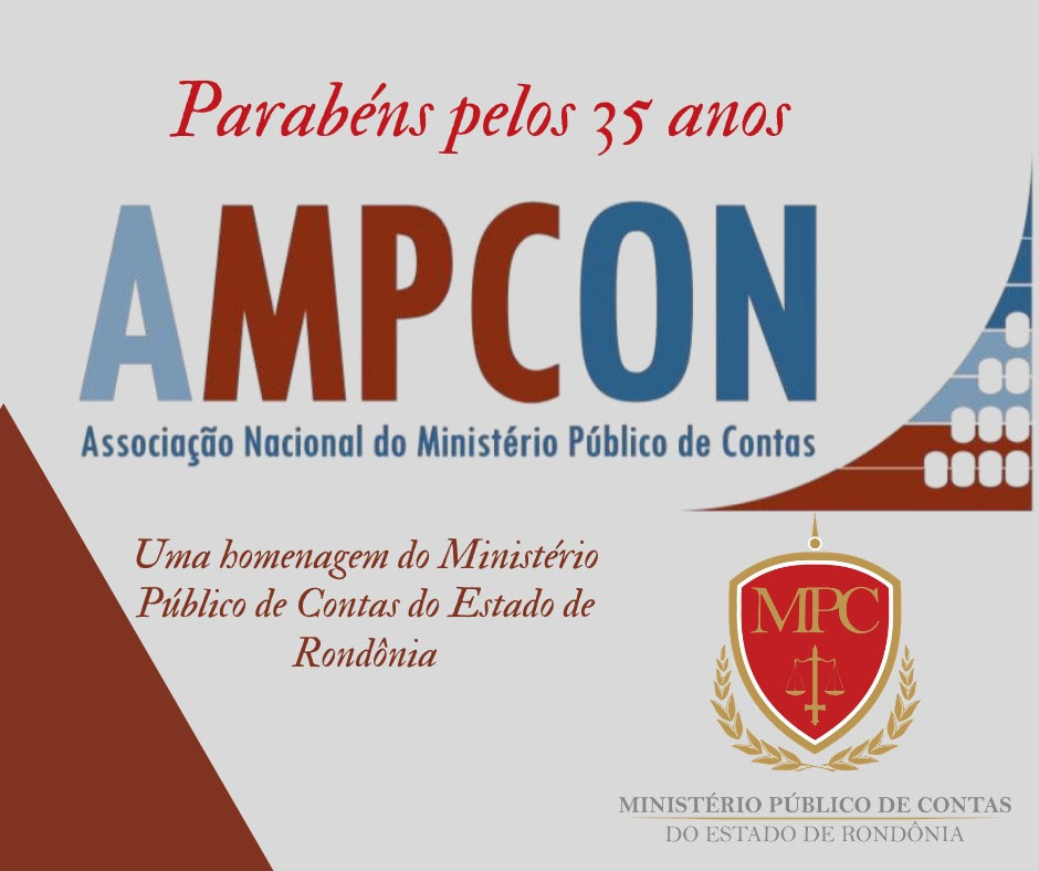 O Ministério Público de Contas do Estado de Rondônia (MPC-RO) parabeniza todos os membros e integrantes da Associação Nacional dos Ministérios Públicos de Contas (AMPCON) pelos 35 anos da entidade, comemorados na última sexta-feira (4 de setembro), destacando ainda o papel da Associação para o fortalecimento do Ministério Público de Contas Brasileiro.