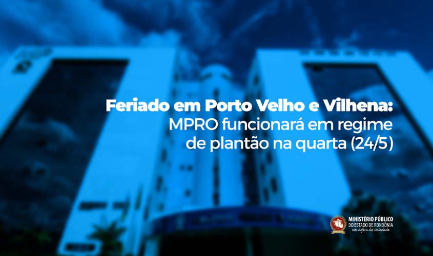 Feriado em Porto Velho e Vilhena: MPRO funcionará em regime de plantão na quarta (24/5)